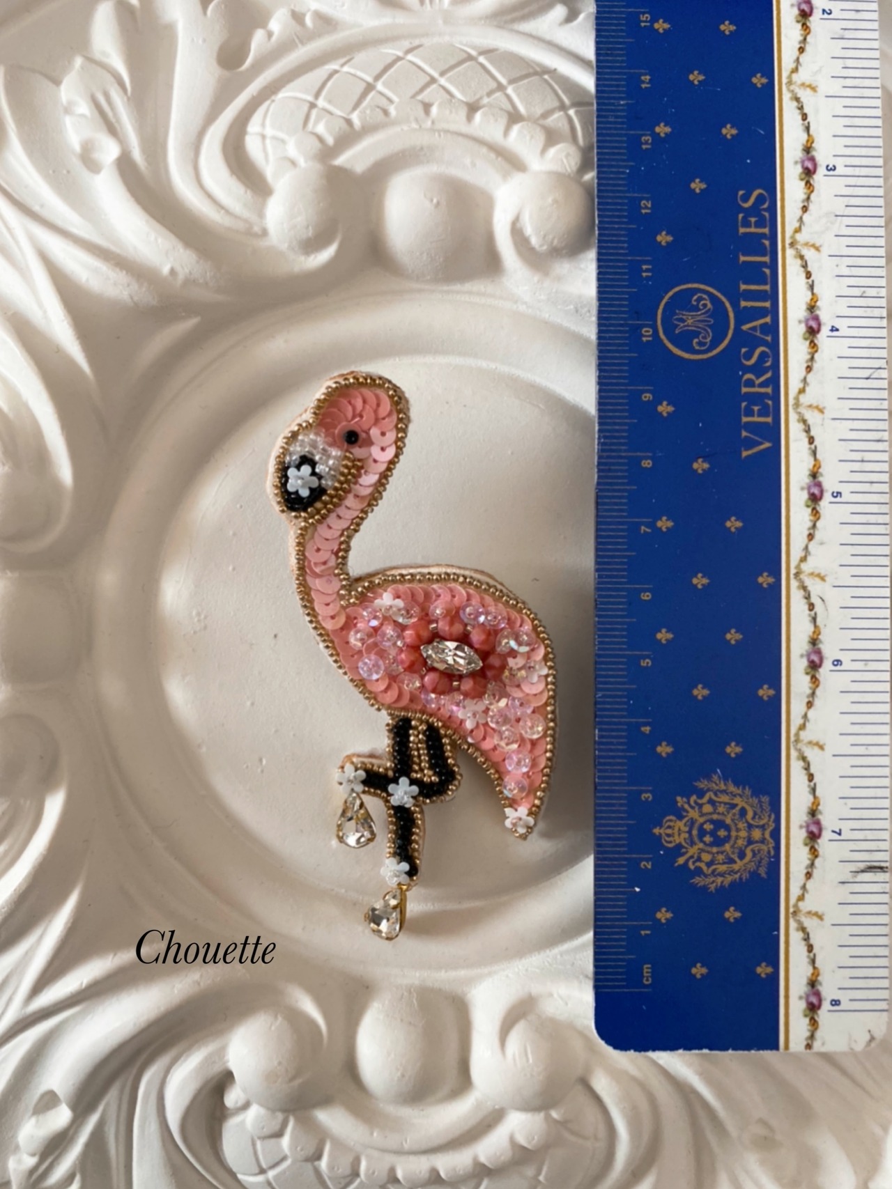 存在感がありながら、上品なピンクが印象的なフラミンゴブローチです